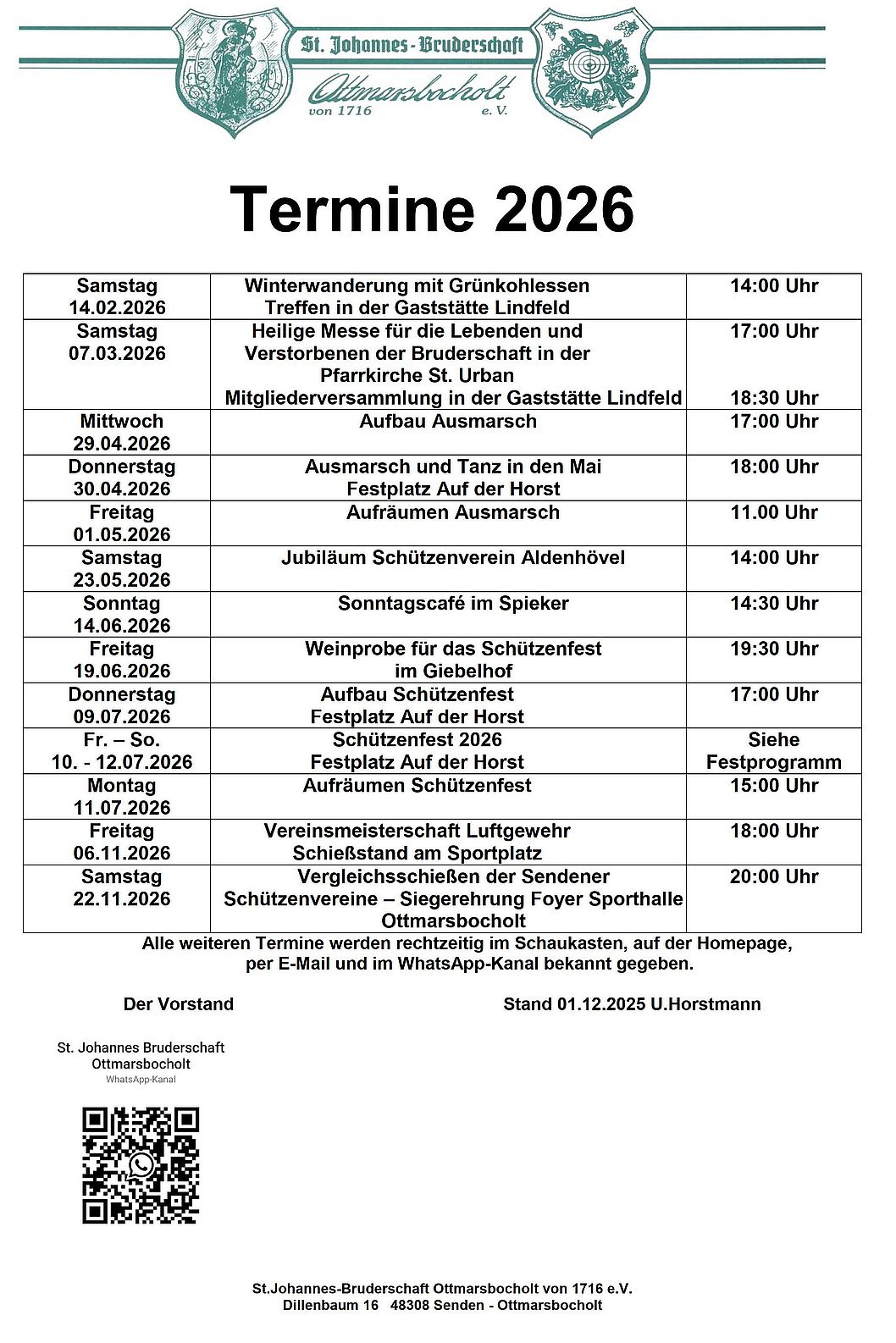 Nach einer Messe für die Lebenden und Verstorbenen der St.-Johannes-Bruderschaft in der St.-Urban-Kirche begrüßte der erste Vorsitzende Uwe Horstmann die Schützenbrüder nun zu ihrer alljährlichen Generalversammlung in der Gaststätte Vollmer. Die Versammlung begann mit einer Bildershow über das Schützenfest im Sommer 2023, die von der Diagruppe des Heimatvereins vorgeführt wurde und mit viel Applaus belohnt wurde.